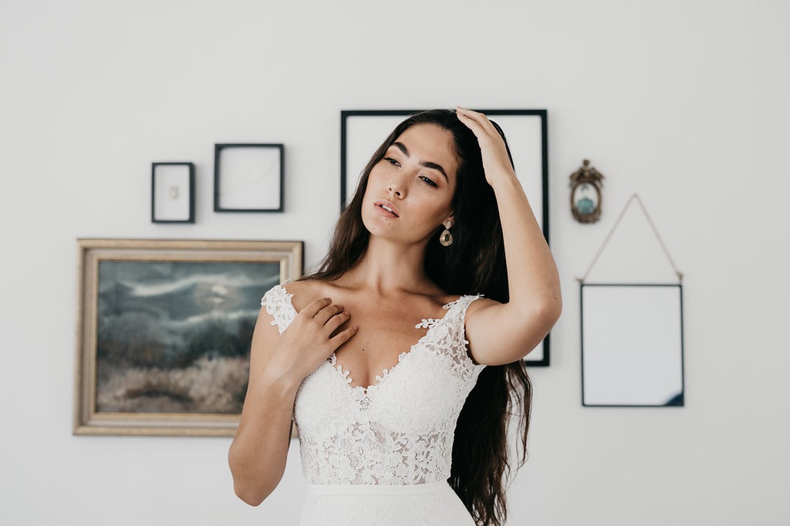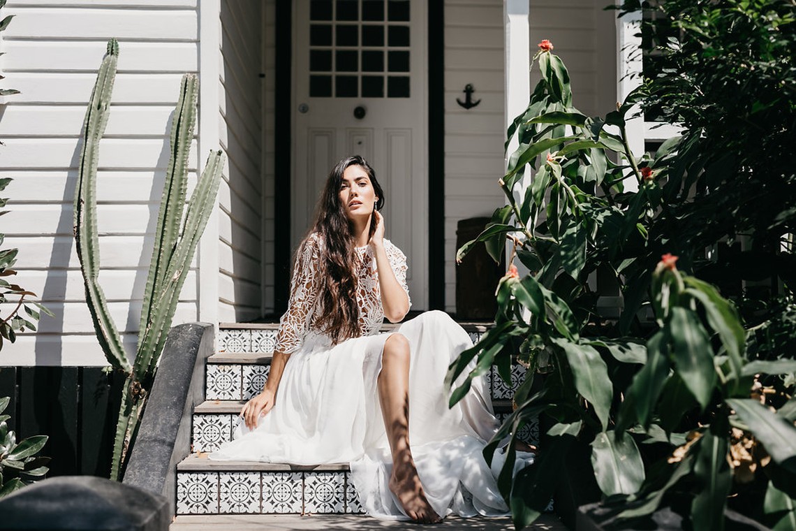 Model wears : Snow Lotus, Persian Indigo, Allium, Peony, Calla, Clematis and Sand Lily.